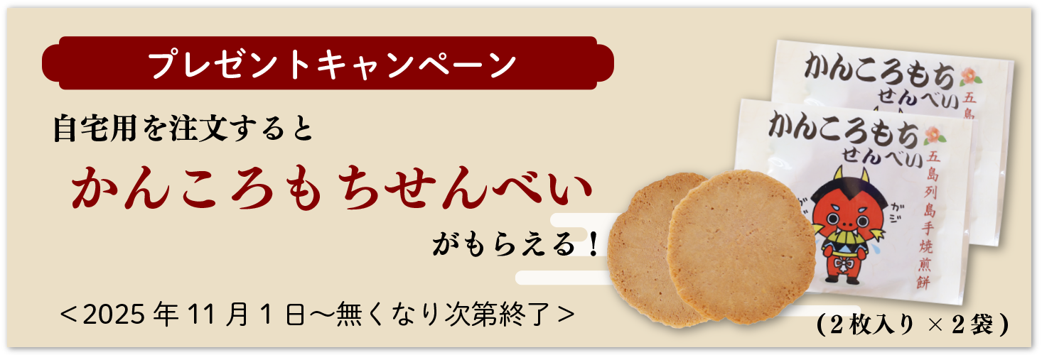 期間中、自宅用をご注文の方に『かんころもちせんべい』をプレゼント!