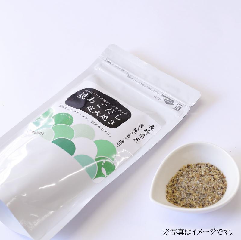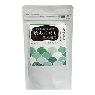 長崎県平戸産の「あご(飛魚)」を炭火で焼いた『炭火焼きあご』だけを入れた贅沢な出汁パックです。