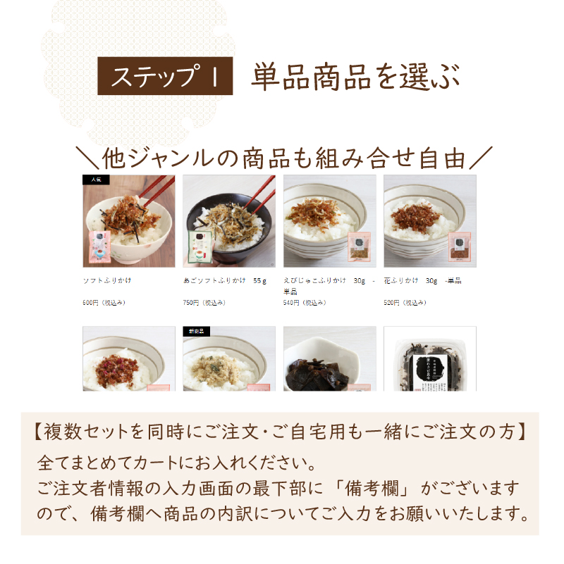 お客様ご自身で商品を選んでオリジナルのセットが作れます。