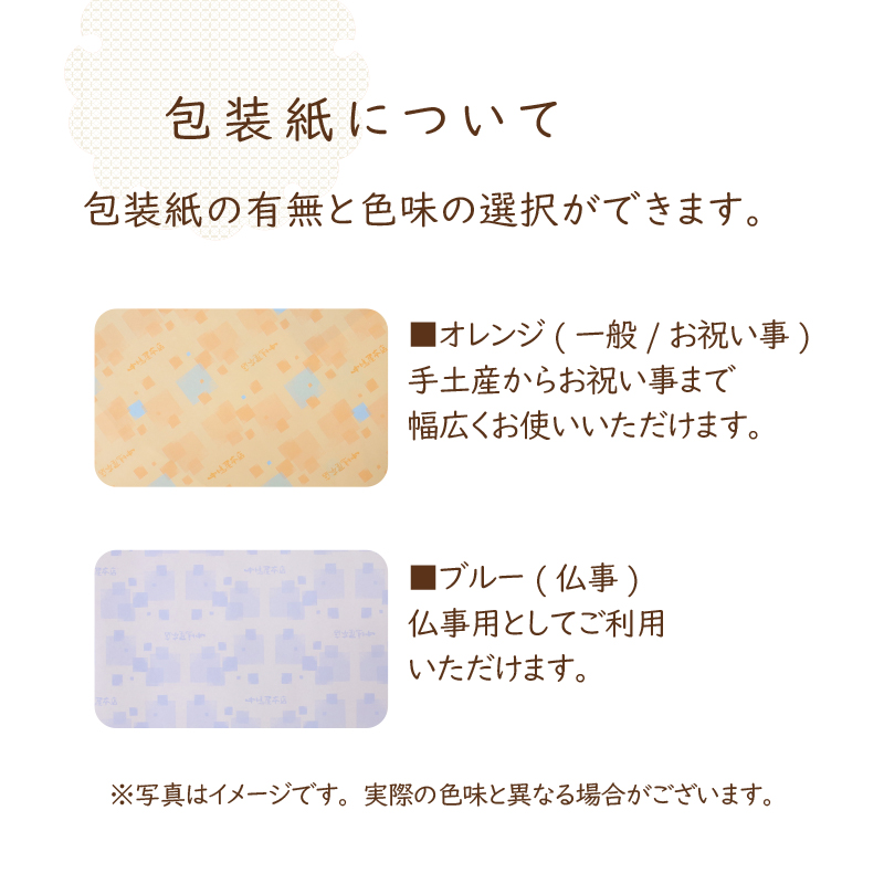 各詰め合せの商品ページで包装紙・熨斗について詳しくご指定いただけます。