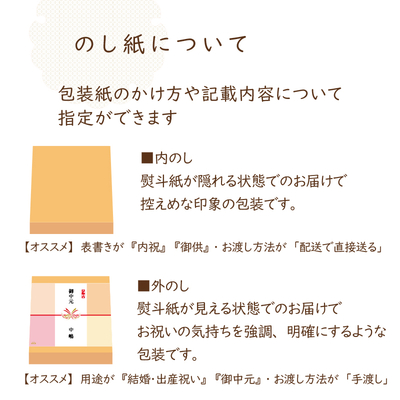 本ページにて包装紙・熨斗について詳しくご指定いただけます。