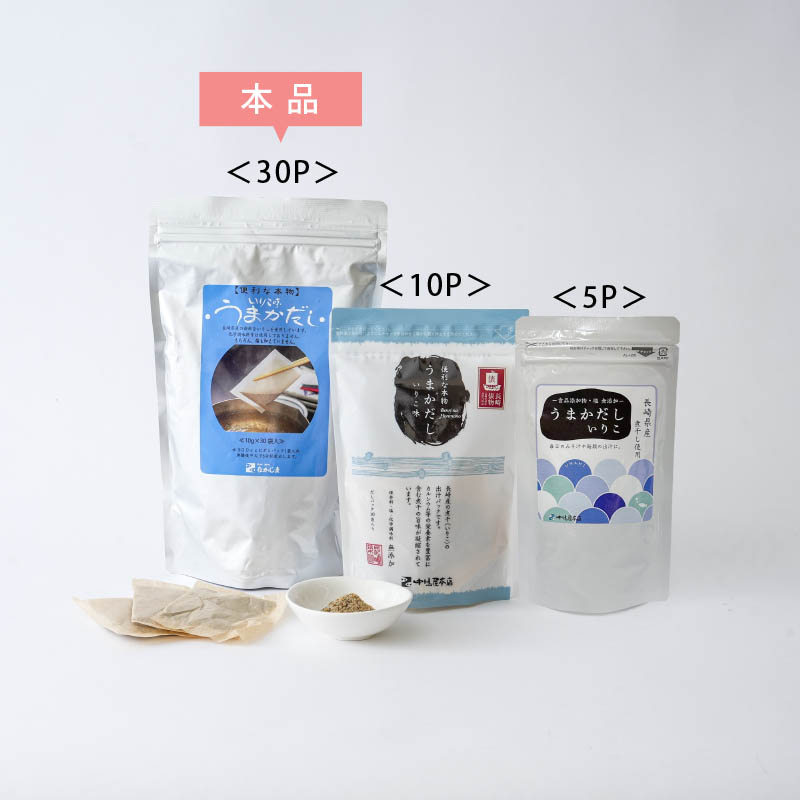 長崎県産「いりこ」と北海道産「昆布」の2種を配合した出汁パックです。