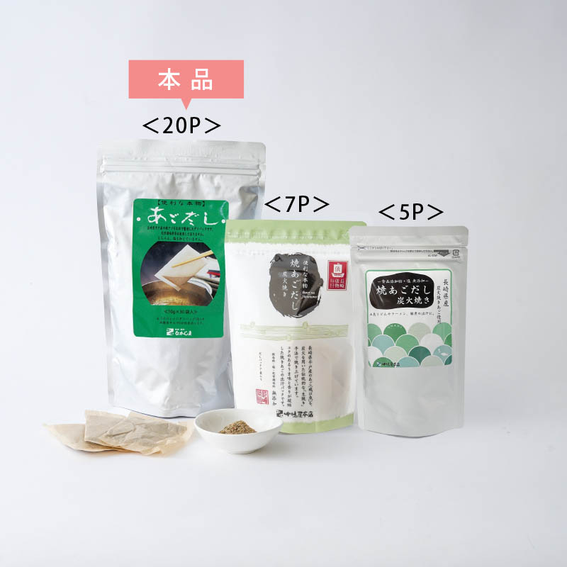 長崎県平戸産の「あご(飛魚)」を炭火で焼いた『炭火焼きあご』だけを入れた贅沢な出汁パックです。