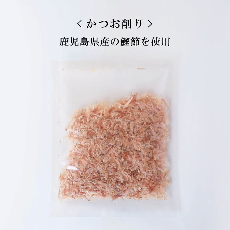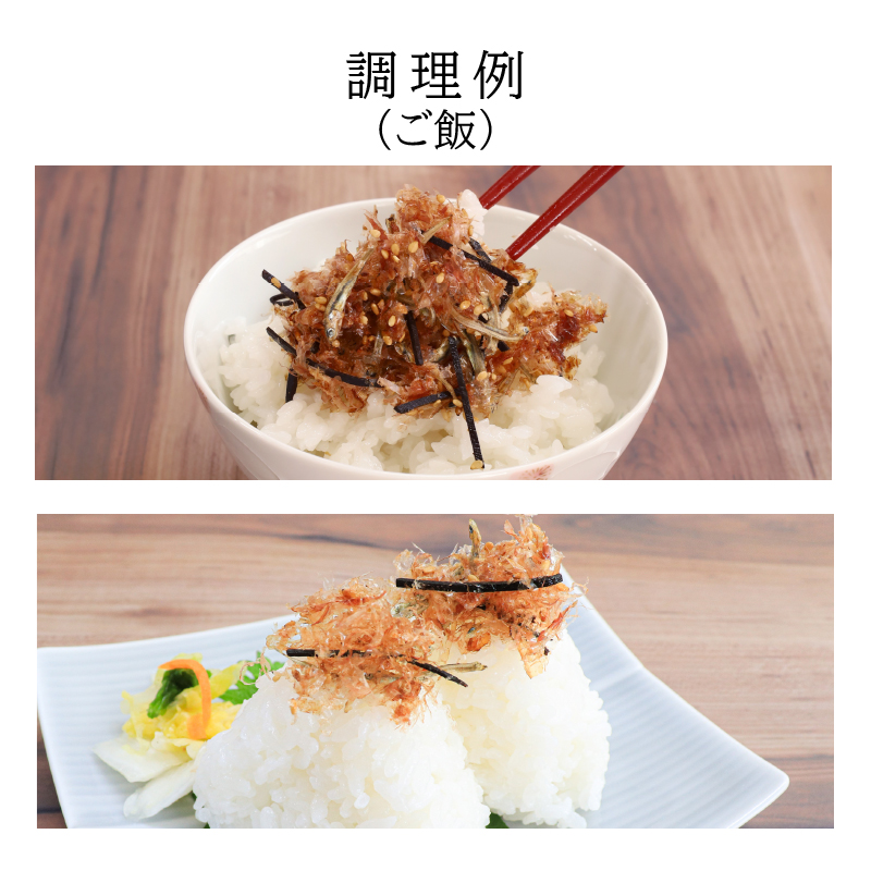出汁専門店が扱う上質な「鰹削り」を贅沢にたっぷり使い、長崎県産の煮干・北海道産の昆布などを合わせたうま味もボリュームも満点のふりかけです。
